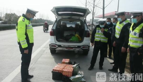 3月11日上午, 徐州邳州交警在巡逻至250省道邳州新河段时,在对一辆白色越野车例行检查时,发现其车辆后备箱内竟装了不少香烟。经过清点发现足有100条各类品牌的香烟,而驾驶员却无法出示相关的合法运输手续。