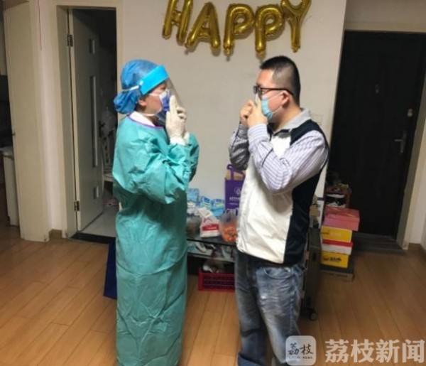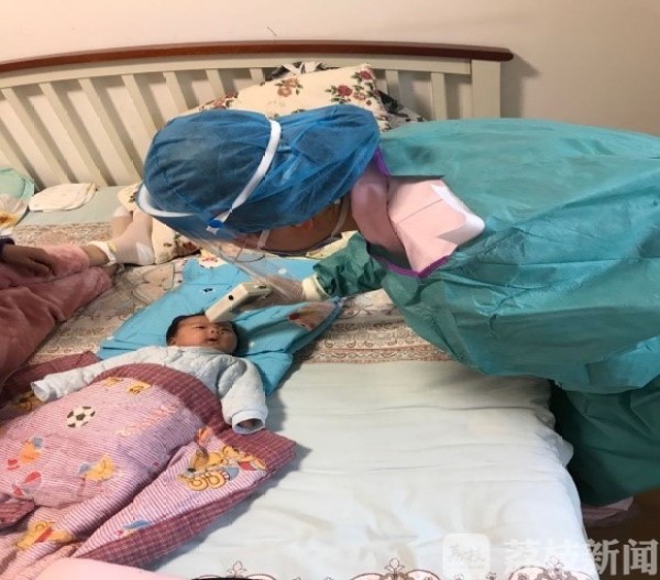 通过对周女士以及家属的详细评估后,栖霞区医院产科护士高苗来到了周女士家中。在门口,高苗护士穿上干净的工作服及隔离衣,戴上护目镜、口罩、医用手套、鞋套等防护品后为宝宝测了黄疸。看到全副武装的护士,周女士紧锁的眉头终于舒展开来。高苗护士说:“我们在医院,接触患者多,我做好了防护,就是在保护宝宝”。服务结束后,高苗还向周女士及家属讲解了婴儿护理及新冠肺炎防控等知识。