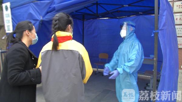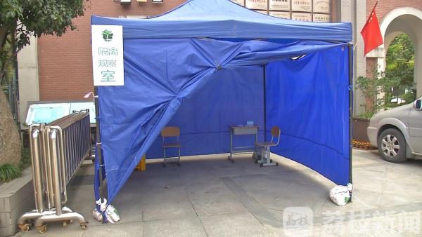 如果是在课间发现体温过高等不适症状,班主任会上报,由穿着防护服的保健老师将学生带到隔离点,随后联系家长。根据上周四个部门的联合检查要求,学校还特地设置了一个远离公共教学区的隔离帐篷。