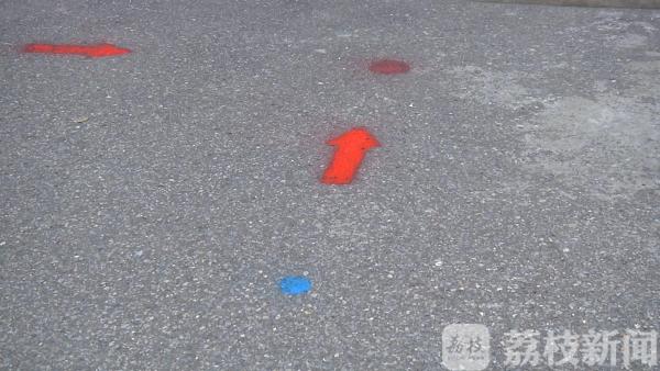 记者在学校的食堂和教学楼之间的地面上发现了很多不同颜色的圆点和箭头,这也是学校最近刚刚喷上去的。是为了小朋友们在到食堂吃饭的时候,每个小朋友站在蓝色的圆点上,和前面小朋友的距离是1.5米,这样他们可以有序进入食堂,互相之间不会太过拥挤。