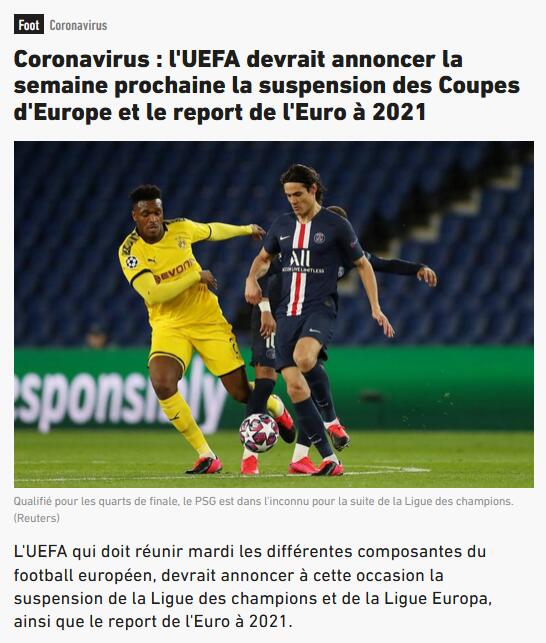 鉴于新冠肺炎疫情,欧足联发布公告,邀请所有成员于3月17号举行电话会议,决定各联赛、欧战和2020年欧洲杯的应对情况。而据外媒报道,本年度欧冠、欧联杯最终将暂停,欧洲杯延期至2021年。