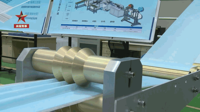 然后,三层布经过仪器打褶、切片,来到下面的分配机;