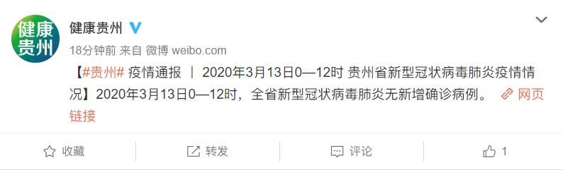 荔枝新闻讯 据贵州省卫健委官微消息,2020年3月13日0—12时,全省新型冠状病毒肺炎无新增确诊病例。