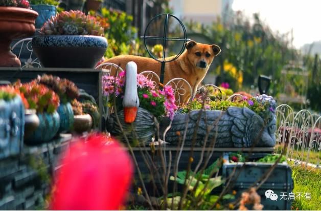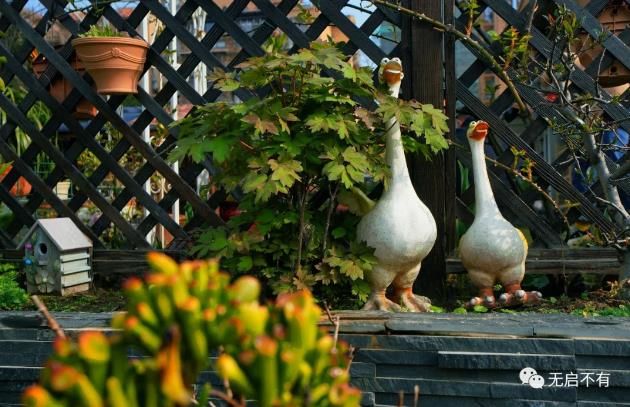 朱新华说,她对于种植些什么并没有明确规划,当季开什么花,就种什么,确保四季都能看见绿叶,看见花开。除了这只精致的木头狗屋,庭院中还有不少点缀:草坪上的秋千,围墙上的铁艺饰品,形神兼备的各式花盆。这些都是朱新华陆陆续续网淘所得,它们和院中的花草一样,都是时光的见证。