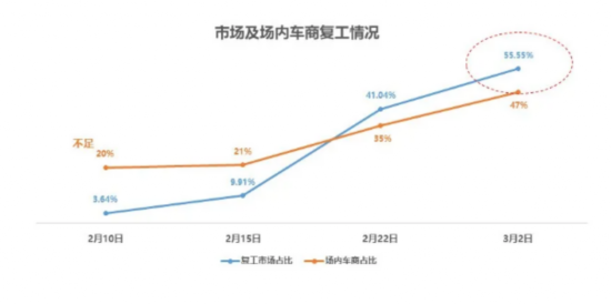 据不完全统计,截至3月2日有24个省市、自治区共706家二手车交易市场复工,复工率为55.55%。从数据上看,2月份第四周客流量平均在同期的30%左右,但进入3月以来有所好转。消费者购车价位基本集中在10万及以下车型,说明目前消费需求以代步刚需为主。