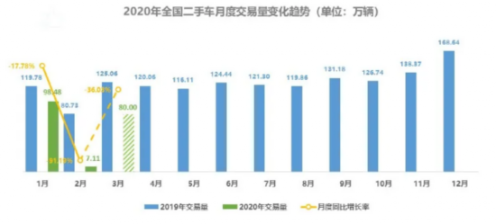 中国汽车流通协会方面认为,1-2月二手车交易量断崖式下滑,主要归因于2月二手车市场整体复工率仅为五成,而已经复工的市场日均交易量下降近7成,疫情期间客流量明显不足导致无法支撑交易。