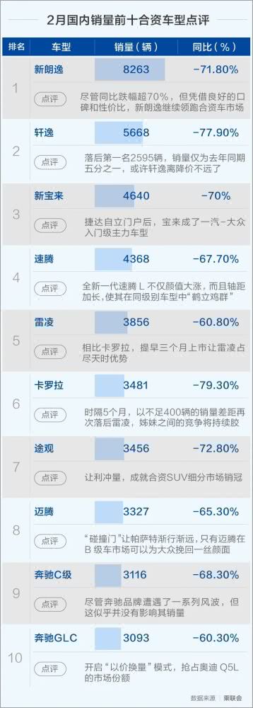 “黑色2月”,合资车企销量下滑幅度“惨烈”,最高跌幅超九成。