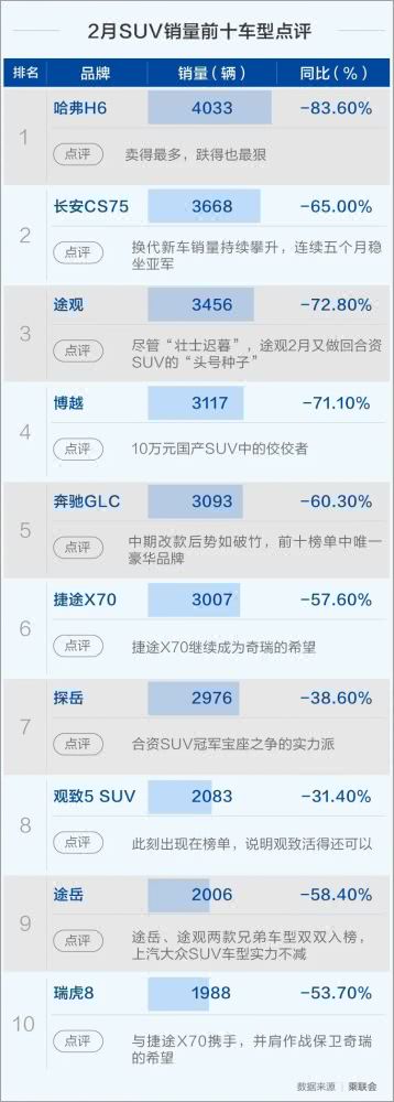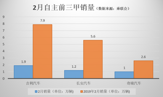 2月,多家自主车企出现了史无前例的下跌幅度,销量排行也大洗牌。