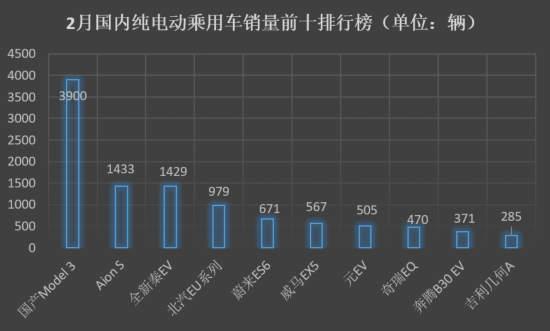 除了特斯拉迅猛增长,2月广汽新能源表现也比较突出,成为当月国内新能源乘用车市场的一大亮点。这主要得益于Aion S在2月的市场表现,该车销量为1433辆,位居当月国内纯电动乘用车排行榜第二位。
