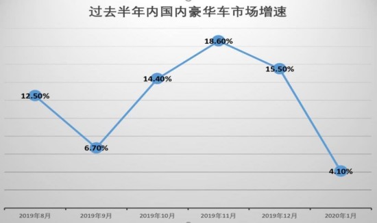 在此之前,国内豪华车市场一直保持着平稳的正向增长。今年1月,在国内车市整体20.5%的降速之下,豪华车市场仍旧拿出了4.1%的同比增幅。2月,春节提前和疫情冲击的影响开始集中体现,豪华车市场也“折戟”。