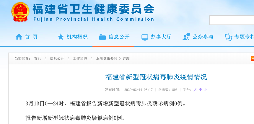 荔枝新闻讯 3月13日0—24时,福建省报告新增新型冠状病毒肺炎确诊病例0例。