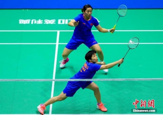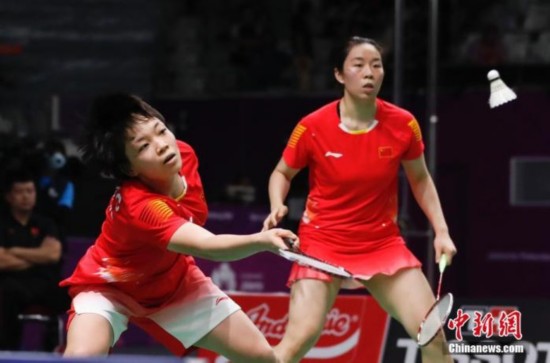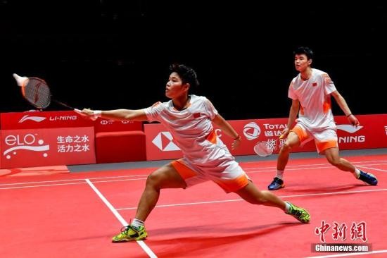 全英赛女双1/4决赛,卫冕冠军陈清晨/贾一凡爆冷出局。资料图:图为陈清晨/贾一凡在比赛中。 中新社记者 张畅 摄