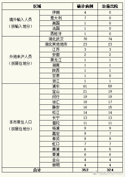 截至3月14日12时,上海市已累计发现确诊病例352例。确诊病例中,男性184例,女性168例;年龄最大88岁,最小7月龄;145例有湖北居住或旅行史,34例有湖北以外地区居住或旅行史,159例有相关病例接触史,4例有伊朗居住史,7例有意大利居住史,1例有美国居住史,1例有法国居住史,1例有西班牙居住史;外地来沪人员111例,境外输入人员14例,本市常住人口227例。具体情况如下图。