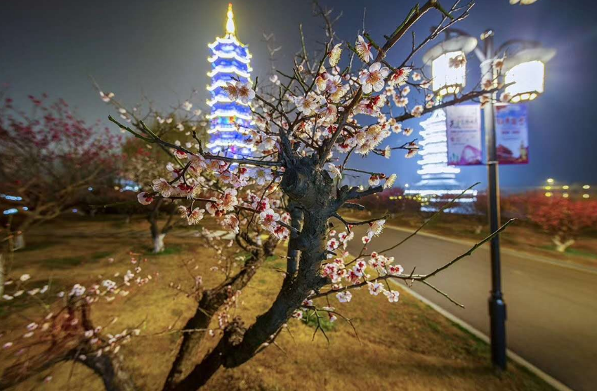月色撩人,暗香浮动,一树树梅花向人们展示着自己的绰约风采,诉说着对于疫情散去的美好期盼,那一缕梅香也将伴随劳累了一天的人们缓缓进入梦乡。
