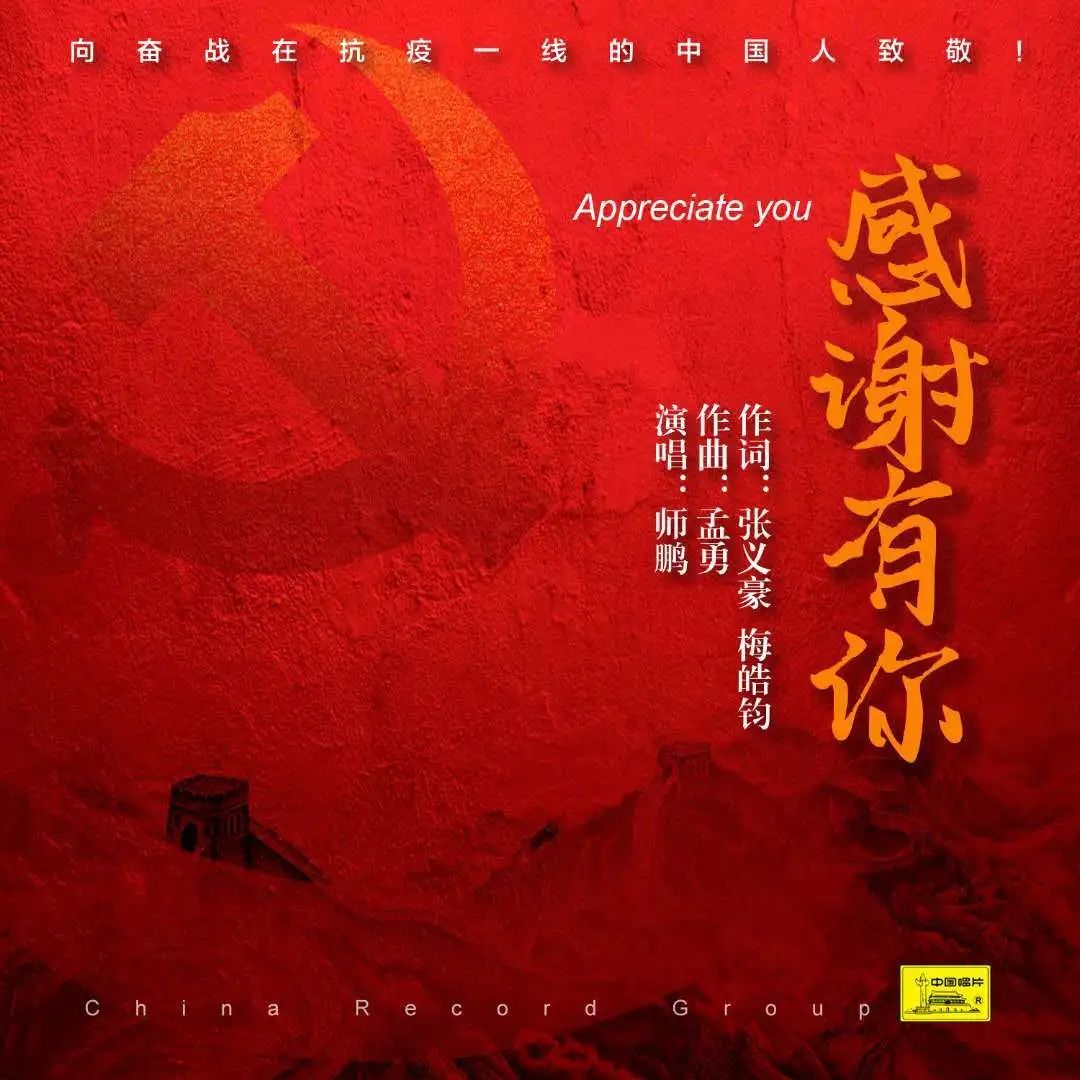 疫情就是命令,防控就是责任。当前,疫情防控取得阶段性重要成果,但任务依然艰巨繁重。为贯彻习近平总书记有关讲话精神,鼓舞抗疫斗志,坚定抗疫信心,3月14日零点,由主创人员、国务院国资委新闻中心副主任张义豪联合湖北籍词作者梅皓钧作词,著名曲作家孟勇和歌唱家师鹏谱曲和演绎,中国唱片集团制作出品的原创公益战疫歌曲《感谢有你》,在腾讯QQ音乐全网首发。