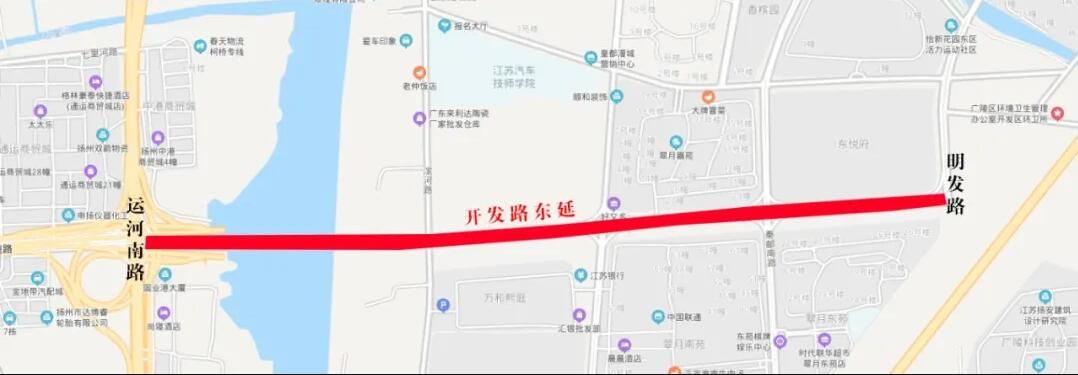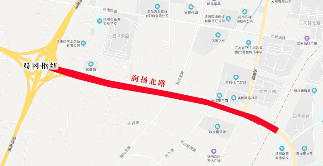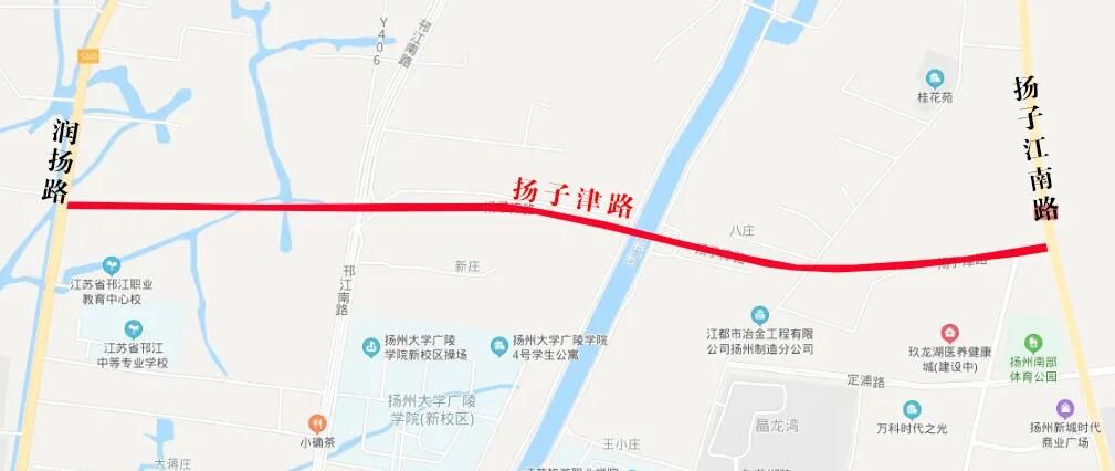 扬子津路全线(345国道~运河南路)途经朴席镇、邗江区、开发区,路线全长约14.5公里。