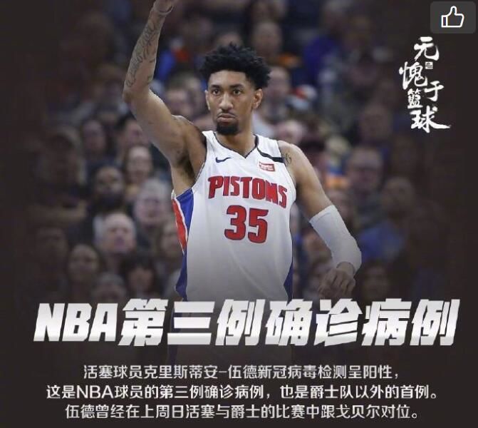 当地时间3月7日,底特律活塞队曾对阵犹他爵士队。随着两名球员病毒检测均呈阳性,爵士决定对该队球员进行检测,并要求他们进行自我隔离。