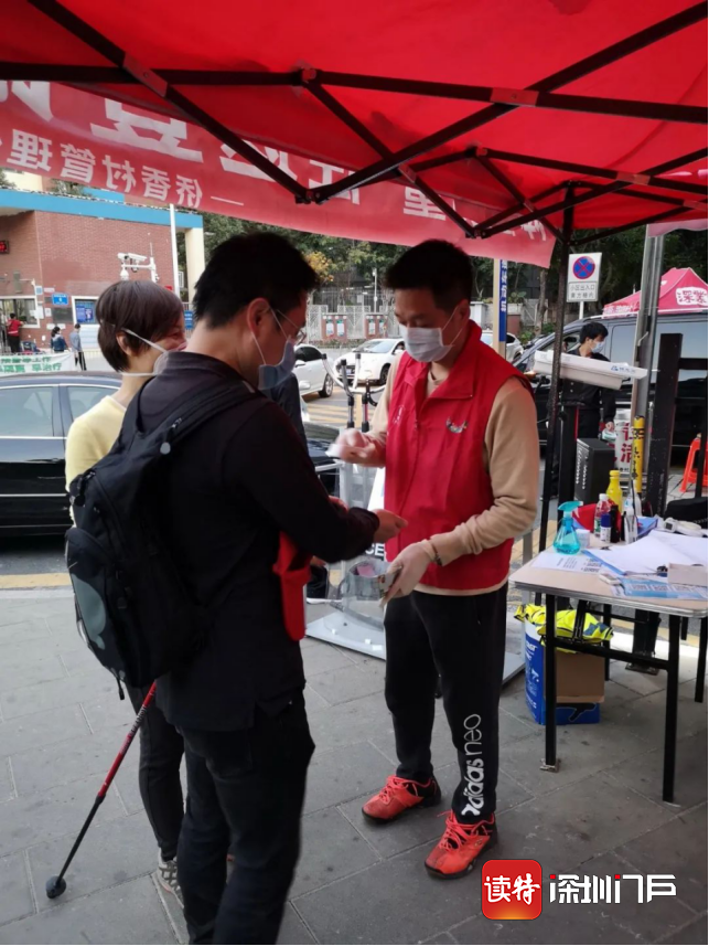 罗湖区翠竹街道翠岭社区党员和群众志愿者协同物业开展防控工作。
