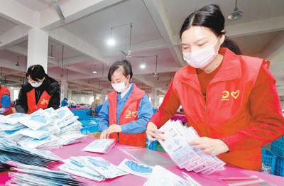 近日,浙江台州市路桥区横街镇由党员、团员组成的“红马甲”帮扶团,来到辖区内一家复产企业,帮助企业搬运物资、包装产品、清点货物,缓解企业生产员工紧缺的燃眉之急。王保初摄