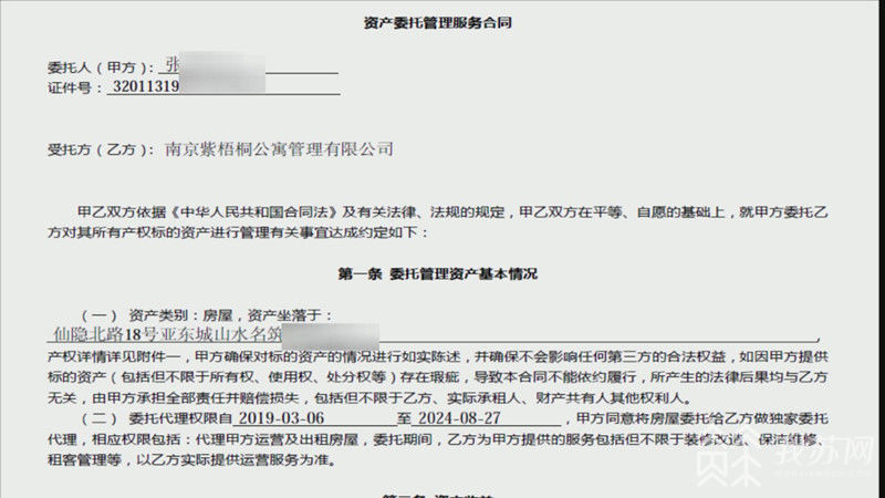 南京市民张女士在亚东城小区有一套一百多平米的房子,2019年3月,她与“蛋壳公寓”签订了一份为期五年的委托管理服务合同,每年房租都会有增加,租金为月付。
