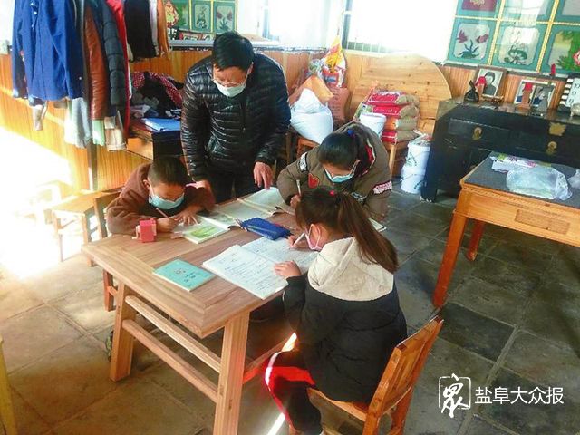 “张老师,‘告之’和‘告知’这里用哪个合适呢?”“这道数学题算来算去怎么会有两个答案?”“10题改病句做好了,其中有一题没把握!”昨天上午,在盐城经济技术开发区步凤镇烈士村张俊宏的家中,3名戴着口罩的留守儿童上完网课后一求教,张俊宏耐心解答。