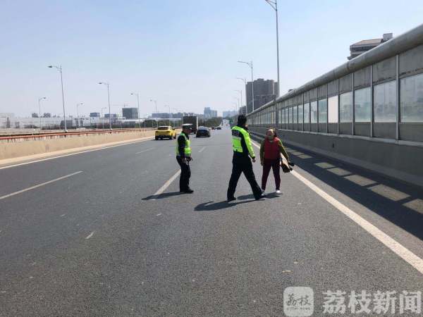 3月15日13时,南京机场高速公路出现惊险一幕。民警接到市民报警称,机场高速由北向南在秦淮河大桥附近,有一名身着红背心的老太抱着纸盒子在高速公路逆行,疑似精神病人,十分危险。