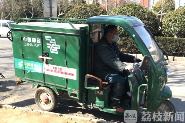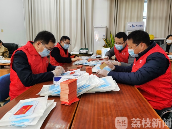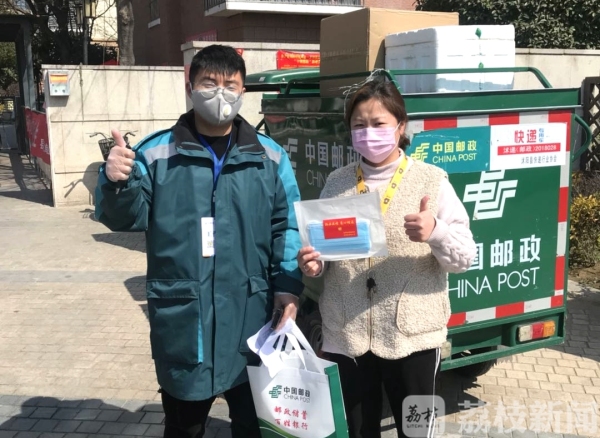 连日来,宿迁市沭阳县邮政志愿服务突击队的投递员们一直在忙着为居民投递口罩。
