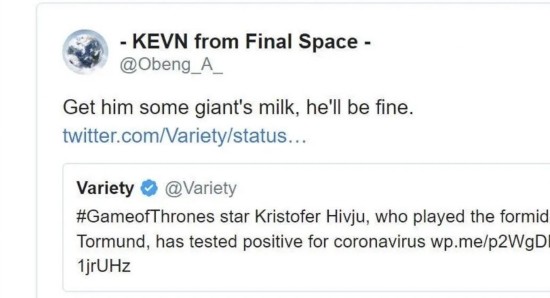 除了担心和祝好,还有不少"入戏太深"的权游迷们都希望他赶紧喝巨人奶,这样才能好得快,更强壮......