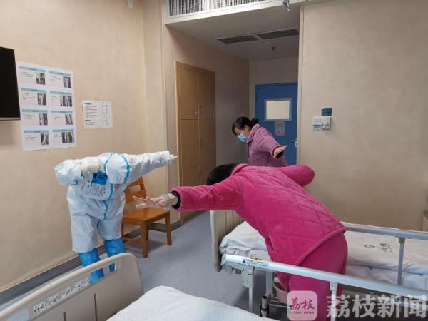一位正在接受康复锻炼的程阿姨说:“刚开始确诊的时候,我感觉整个天都塌下来了,情绪低落。但因为有南京二队的医护人员如家人般的关心和鼓励,让我坚定了信心,她们不光陪我聊天解闷,还带着我们一起做康复操,让我感受到我不是一个人在战斗。他们在坚守,我们没理由放弃。”