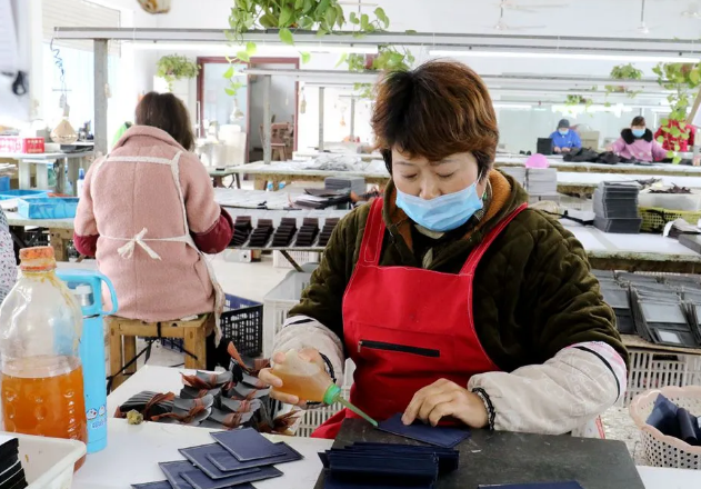 在何桥镇致豪箱包加工厂,记者见到了工作中的牛凤芝。牛凤芝家因病致贫被列入建档立卡贫困户,何桥镇张集村支部书记刘传新主动帮她联系致豪箱包加工厂,让她在家门口实现“就业”。