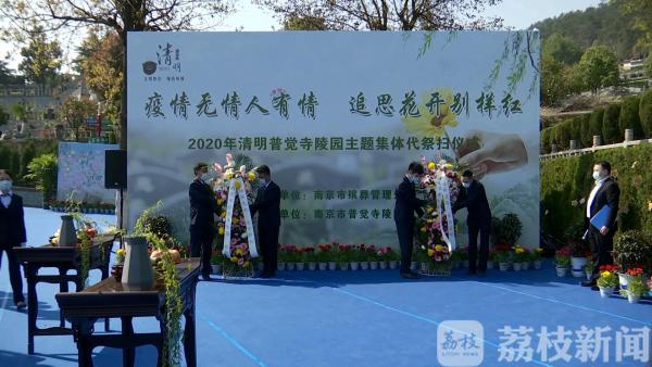 疫情无情人有情,追思花开别样红。上午10点,随着南京普觉寺墓园主题集体代祭扫活动的开始,工作人员敬献花篮、诵读祭文、行三献礼并给每个墓穴敬献菊花。工作人员表示:普觉寺墓园是南京最大的墓园,目前有穴位将近7万个,集中代祭扫的难度比较大,仅仅菊花就准备了7万枝,还要一一摆放在墓碑前。为此,他们提前做好了准备,今天凌晨4点多钟就全员行动起来。