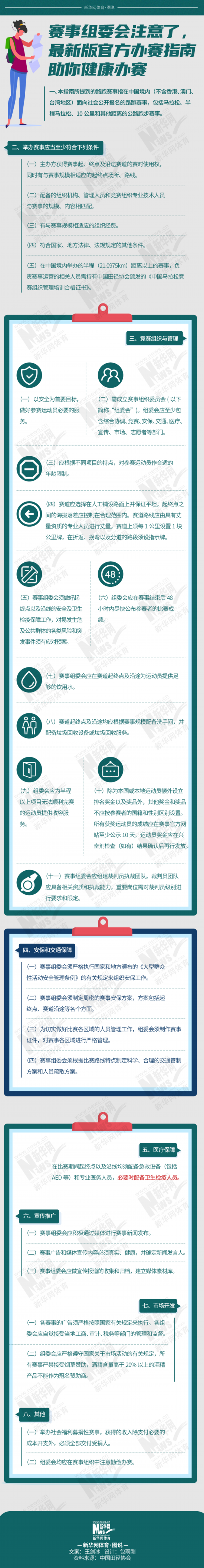 日前,中国田径协会正式公布2020年《中国马拉松及相关运动办赛指南》,旨在规范中国境内路跑赛事的组织管理,促进路跑赛事健康发展。指南都包含哪些内容?如何保障赛事有序开展?这张图干货满满。