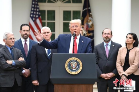 当地时间3月13日,美国总统特朗普在白宫宣布“国家紧急状态”,应对新冠肺炎疫情。 中新社记者 陈孟统 摄