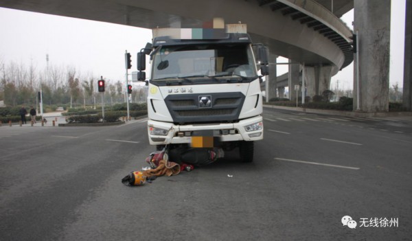 2019年3月3日早晨5:50左右,在徐州市三环北路与天齐路交叉口发生的一起事故,当时一辆渣土货运车将一名骑电动车男子碾在了车下。由于电动自行车驾驶员佩带了头盔,头部才没有碾压在车轮下,电动车驾驶员只是擦伤,没有生命危险。