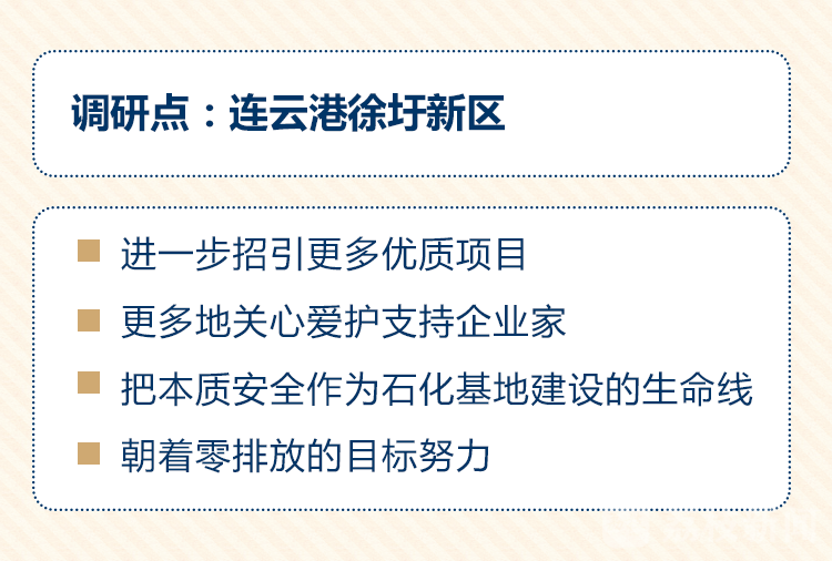 连云港是国务院确定的七大石化产业基地之一,大型石化项目正加速集聚。在徐圩新区,娄勤俭先后察看了中化高端精细化工、卫星石化乙烯综合利用、盛虹炼化一体化等项目建设现场,工地上紧张有序、一片忙碌,企业负责人都表示,目前到岗员工人数已超过去年,对按计划完成项目建设、投产运营充满信心。娄勤俭肯定了连云港通过抓重大项目建设提振了发展信心、呈现出良好势头,希望围绕构建主导产业体系,进一步招引更多优质项目,推进在建项目早日建成达产,为长远发展积蓄势能、提供支撑。他强调,企业家是从市场中打拼出来的,是宝贵的财富,要更多地关心爱护支持他们,充分调动其积极性主动性创造性,让他们在时代进步中追逐梦想、大展身手。