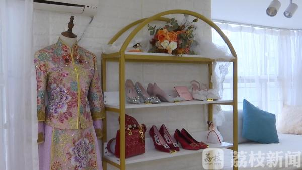 婚礼的幸福时刻,自然也少不了漂亮的礼服婚纱,在南京大行宫附近的一家婚纱店,记者看到店内已经挂满了琳琅满目的服饰,负责人陈小晶告诉记者,他们在2月24号复工之后每天只错时接受2对新人预约。南京某婚纱店负责人陈小晶表示,因为她们2月1号已经开始线上复工,新娘开始在线上沟通,所以线下签单的时候订单率会更高一些。