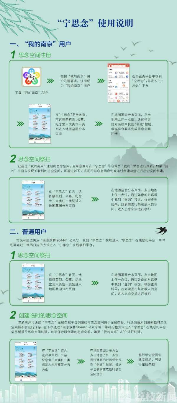 今天(3月19日),从民政部门传来消息,经过多次测试,“宁思念”网上祭扫平台已具备上线条件,即日起,南京市民可登录“我的南京”APP平台或“南京殡葬96444”公众号免费在线祭扫。