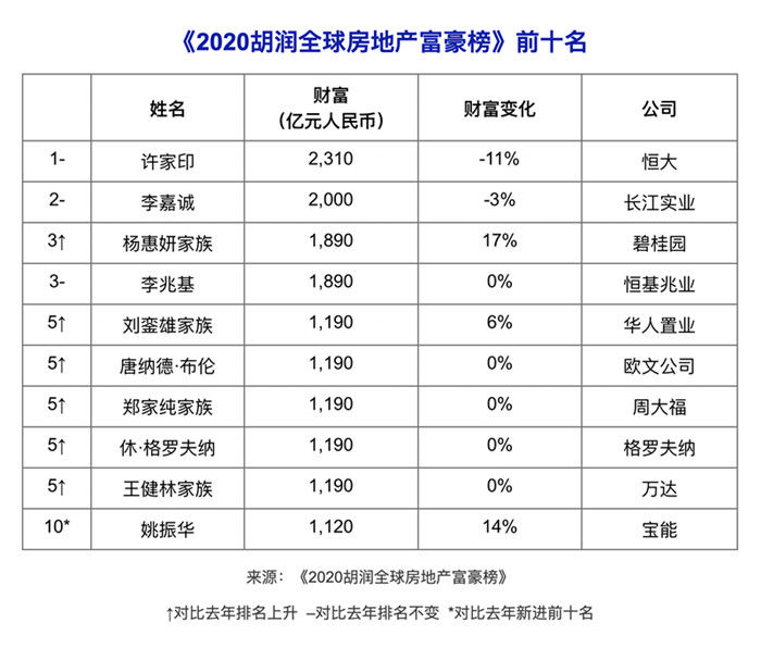 《2020胡润全球房地产富豪榜》的上榜企业家主要财富来源于房地产领域,上榜门槛为十亿美元,财富计算截止日期为2020年1月31日。据此标准,胡润研究院在全球共找到256位十亿美元地产企业家,比去年增加17位。总财富达6.7万亿元人民币,比去年增长11%。