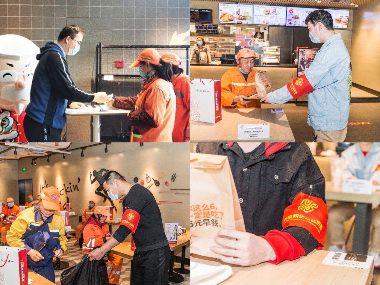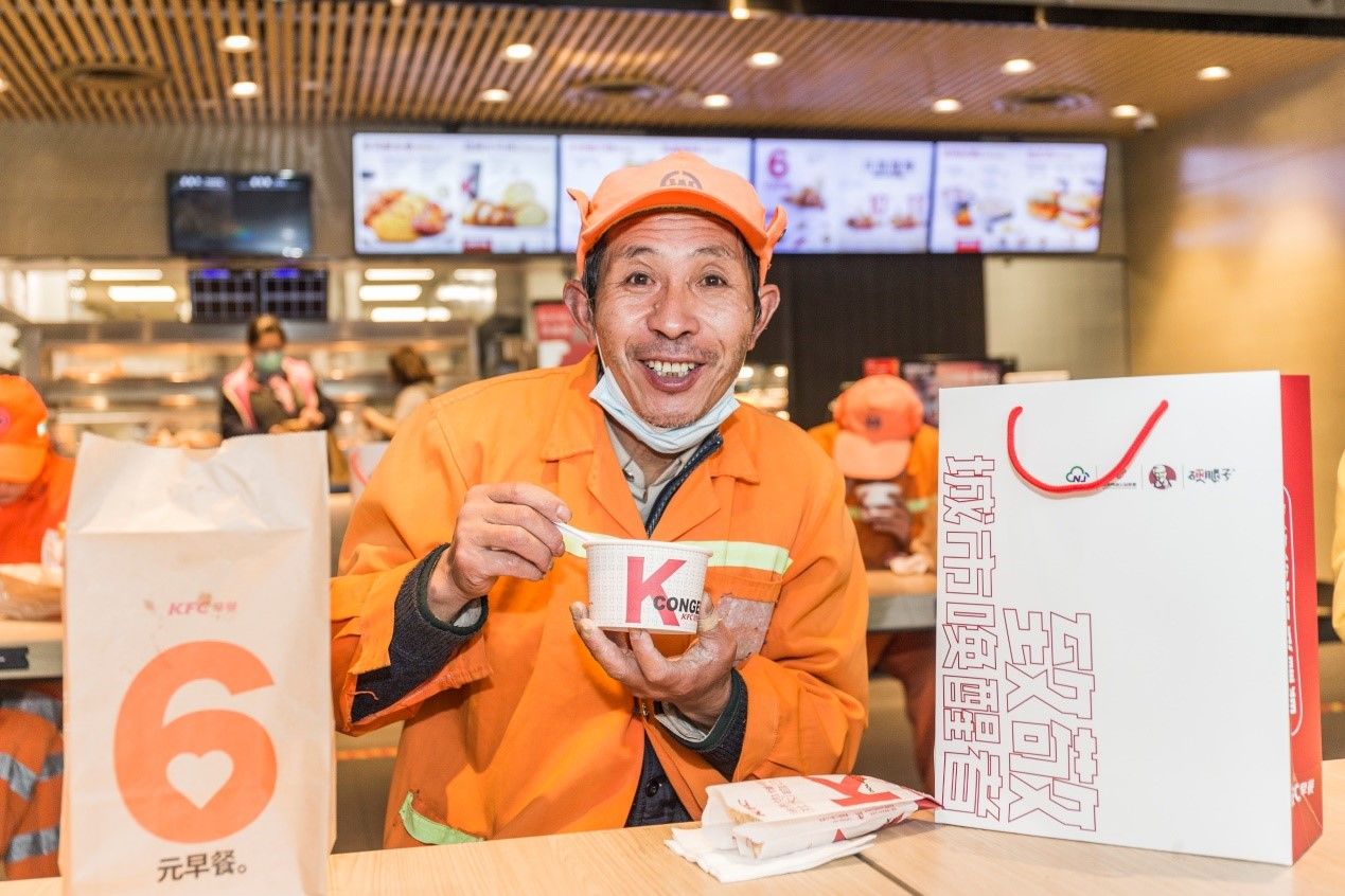 南京河西环建公司相关负责人表示,肯德基餐厅常年为环卫工人提供“避风港”,如今更关爱到他们的早餐。平日里工人们很少能坐下来享用早饭,很感谢这次公益活动,让平凡岗位上的他们感受到自己服务城市的价值。有志愿者坦言,特殊时期一直希望自己能做些什么,参与这次志愿服务,看到环卫工们的笑容自己也收获了鼓舞。在全面复工、万物向好的大环境下,普通市民主动加入公益行动,为复苏中的城市增添了更多温度与活力。