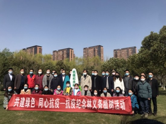 活动现场,市卫健委和市城管局抗疫一线党员代表共同为“抗疫纪念林”揭牌。