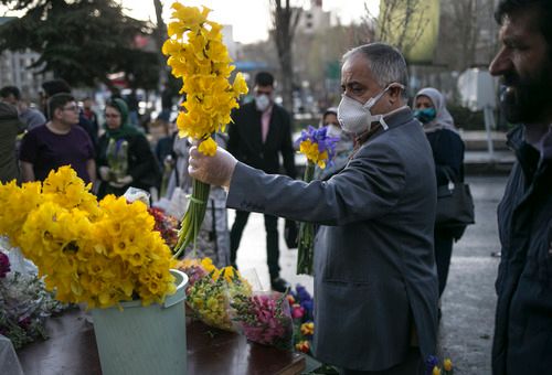 3月19日,有伊朗民众戴着口罩在挑选鲜花,准备庆祝节日。新华社发