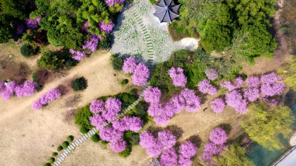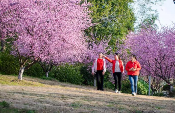 春日花开正艳。这两天东湖公园内,美人梅在春日的阳光下盛放,花开处云蒸霞蔚,美景如画。