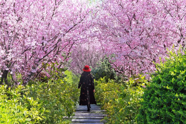 走在梅海树丛中,宛若置身于粉色霞霭的童话世界。