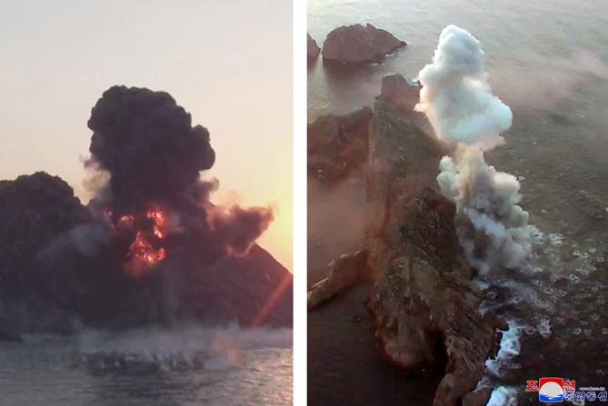 金正恩下达射击口令,战术制导导弹精准打击了目标岛屿。报道称示范射击充分显示了设计不同的飞行轨道和落角特点、导弹命中率和弹头威力。