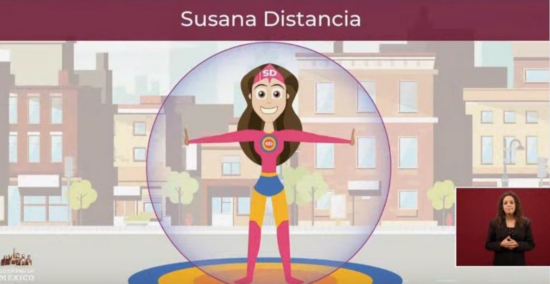 墨西哥当地时间3月20日,墨西哥卫生部在每日发布会上推出了名叫“卫生距离侠”(SUSANA DISTANCIA)的卡通超级女英雄形象,其中苏珊娜(SUSANA)是墨西哥常见的女性名字,同时也是西班牙语里面“您的健康”(SU SANA)这两个单词的合并连写,通过谐音提示墨西哥民众在疫情期间,注意卫生防护,特别是在公共场合与人社交接触时保持“两臂伸直”的安全距离,也就是说两个人都伸开手臂,之间形成的大概1.5米到2米的距离是安全距离,形成保护屏障,有效防止疫情第二阶段的社区传染。