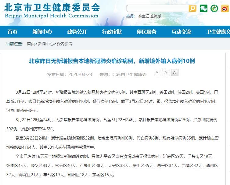 荔枝新闻讯 据北京市卫健委官网消息,3月22日12时至24时,北京新增报告境外输入新冠肺炎确诊病例8例,其中西班牙2例、英国2例、法国2例、美国1例、巴基斯坦1例。昨日(22日)共新增境外输入确诊病例10例,疑似病例15例。截至3月22日24时,累计报告境外输入确诊病例107例,治愈出院病例8例。