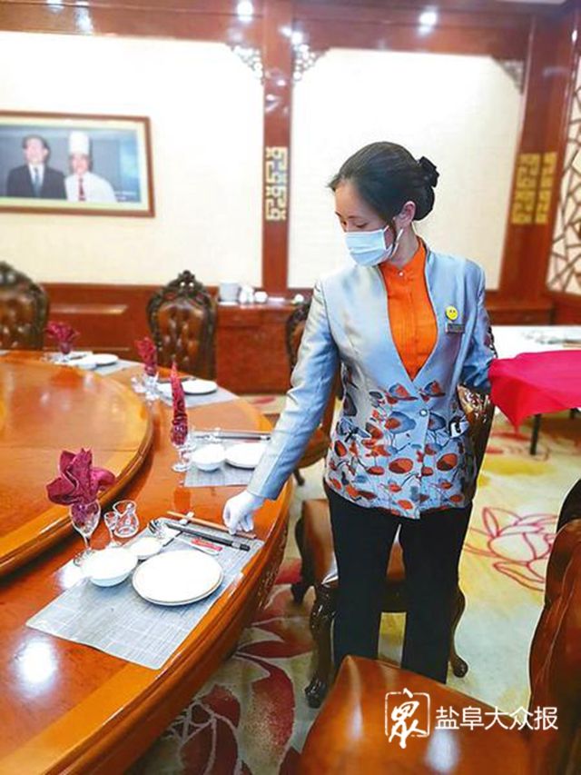 3月19日,盐城餐饮业全面复工营业,市烹饪行业协会秘书长徐加忠介绍,协会要求各餐饮企业在严格做好防控防疫工作的前提下,拒烹拒食野生动物,同时提倡分餐,鼓励餐饮单位增加分餐菜的菜品供应比例,不能按位装盘的菜肴如整鸡、整鱼,可以在餐桌展示后,在接手台分餐装盘后,分别呈送给每位顾客。
