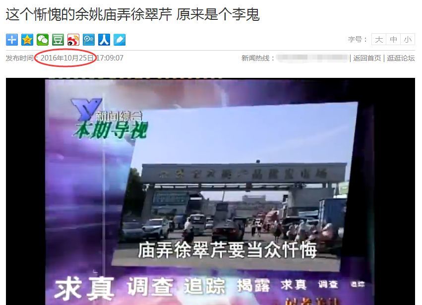 早在2016年就出现“徐翠芹忏悔”的内容,当时媒体已经辟谣。截图自余姚视听网