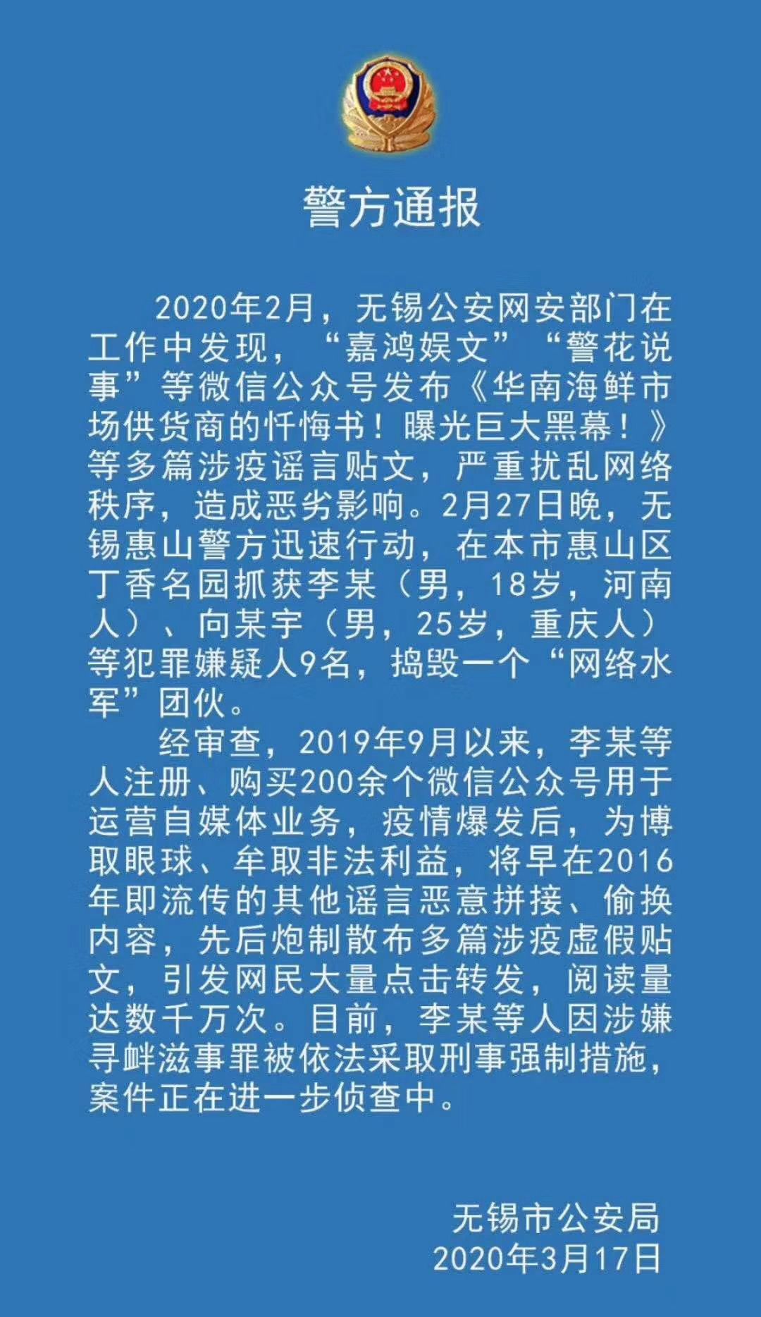千万阅读量从何而来?文中内容是真是假?无锡市公安局第一时间成立专案组,针对此篇“爆文”展开调查。
