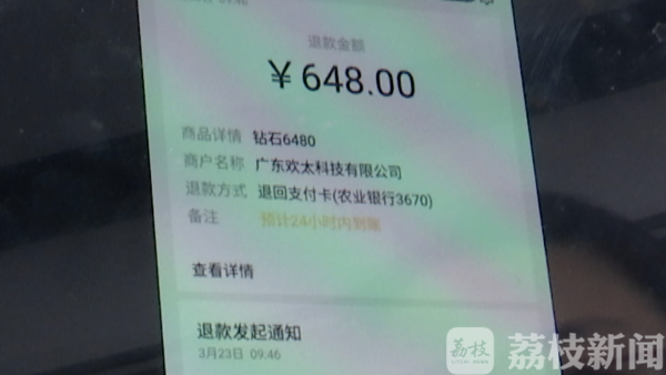 由于孩子使用大人的手机注册充值。游戏开发方和运营方“网易游戏”表示,只要按要求提交材料申请,如果核验确认属于未成年人充值,就可以申请退款。3月23号,王先生反馈表示,经过一周的申请和等待,部分退款已经到账。“接近7000元到账了,还有3000多显示未到账,银行卡显示是24小时内会到账。”